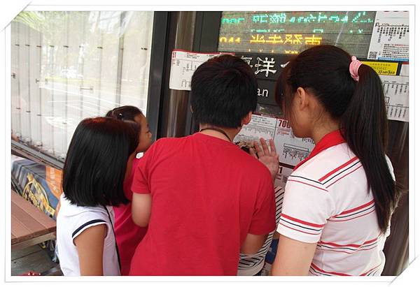 很無奈的是這三個孩子看見另一組在研究705的路線,她們居然忘記自己要搭的是916,